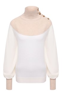 Milk nude cashmere turtleneck jumper from Chloé featuring a ribbed roll neck, a loose fit, long sleeves and a ribbed hem and cuffs.