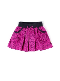 ЯРКО-РОЗОВАЯ ТРИКОТАЖНАЯ ЮБКА С АНИМАЛИСТИЧЕСКИМ ПРИНТОМ, ДВА КАРМАНА, ПОЯС-РЕЗИНКА С ЗАВЯЗКАМИ.