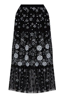 Юбка миди Deco с пайетками от Self-Portrait. Украшение из пайеток, цветочный узор, завышенная посадка, эластичный пояс, модель без застежки и средней длины. Цвет: черный.