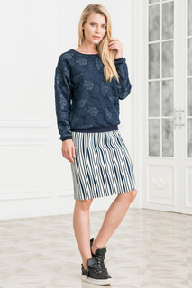 джерси, в полоску, классическая посадка на талии, без аппликаций, молния, застежка сзади, без карманов, без подкладки, юбка