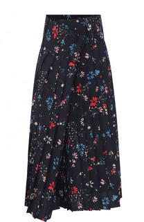 Синяя плиссированная юбка 'Hourglass ' от Balenciaga. Завышенная посадка, потайная застежка на молнии сбоку, вставка из микро плиссировки, цветочный узор, длина по колено.