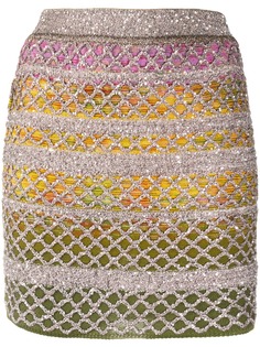 вязаное изделие, без аппликаций, разноцветный узор, классическая посадка на талии, без карманов, эластичная застежка, юбка-трапеция