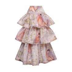 Разноцветная шелковая многоярусная юбка-миди от Zimmermann. Состав: Шелк/Вискоза