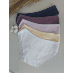 Комплект женских трусиков из 5 штук из ткани в рубчик не оставит равнодушным ни одну девушку; женщину; девочку подростка. Набор эластичного классического нижнего белья из хлопка отличается высоким качеством ткани, благодаря чему, все изделия будут неизм...