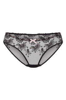 Трусики из полупрозрачного кружева с вышитыми точками от Agent Provocateur. Спереди по краю отделка цветочным кружевом в тон. По краям тонкие резинки с мелким кружевом. Тонкие перемычки по бокам подчеркивают линии бедер. Состав: 100% полиамид вышивка:...